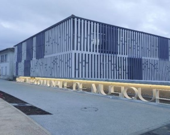 La façade du bâtiment représente les partitions des Archives de l’Ecole de Musique de Mimizan.